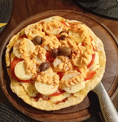Comencé con esta pizza de palmitos, muzzarella, tomates y salsa golf, que fue la primera y más suave.